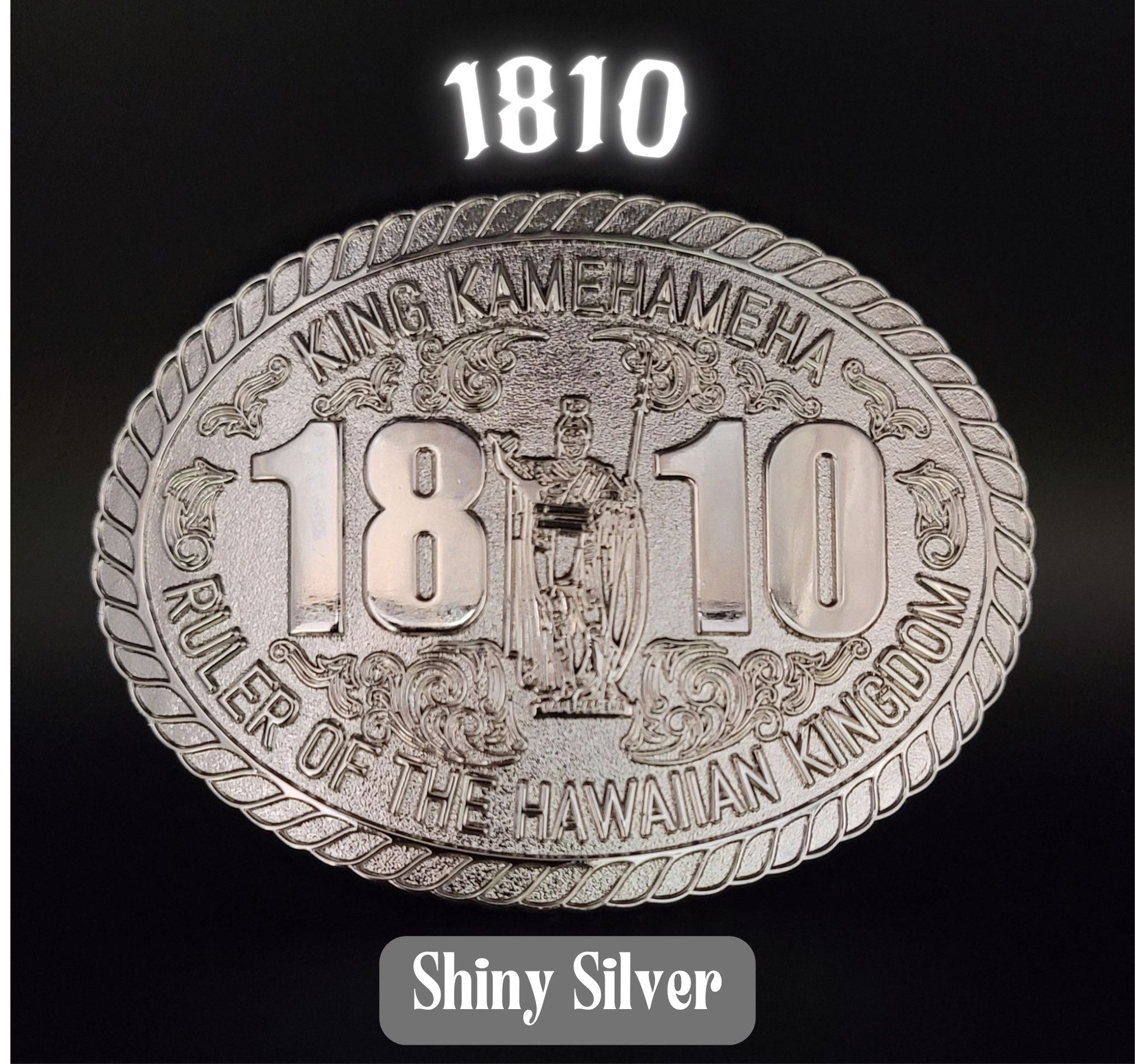 HIs Finest Special. 1810 belt buckle with a shiny silver finish. Product dimensions are 4" x 3". Fits belts up to 1.75".